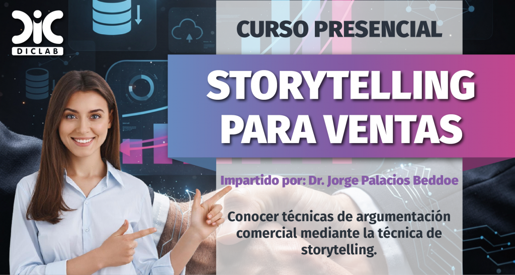 Te invitamos a nuestro curso presencial “Storytelling para Ventas”, impartido por el Dr. Jorge Palacios Beddoe, donde aprenderás a comunicar de manera estratégica y persuasiva a través de historias. A